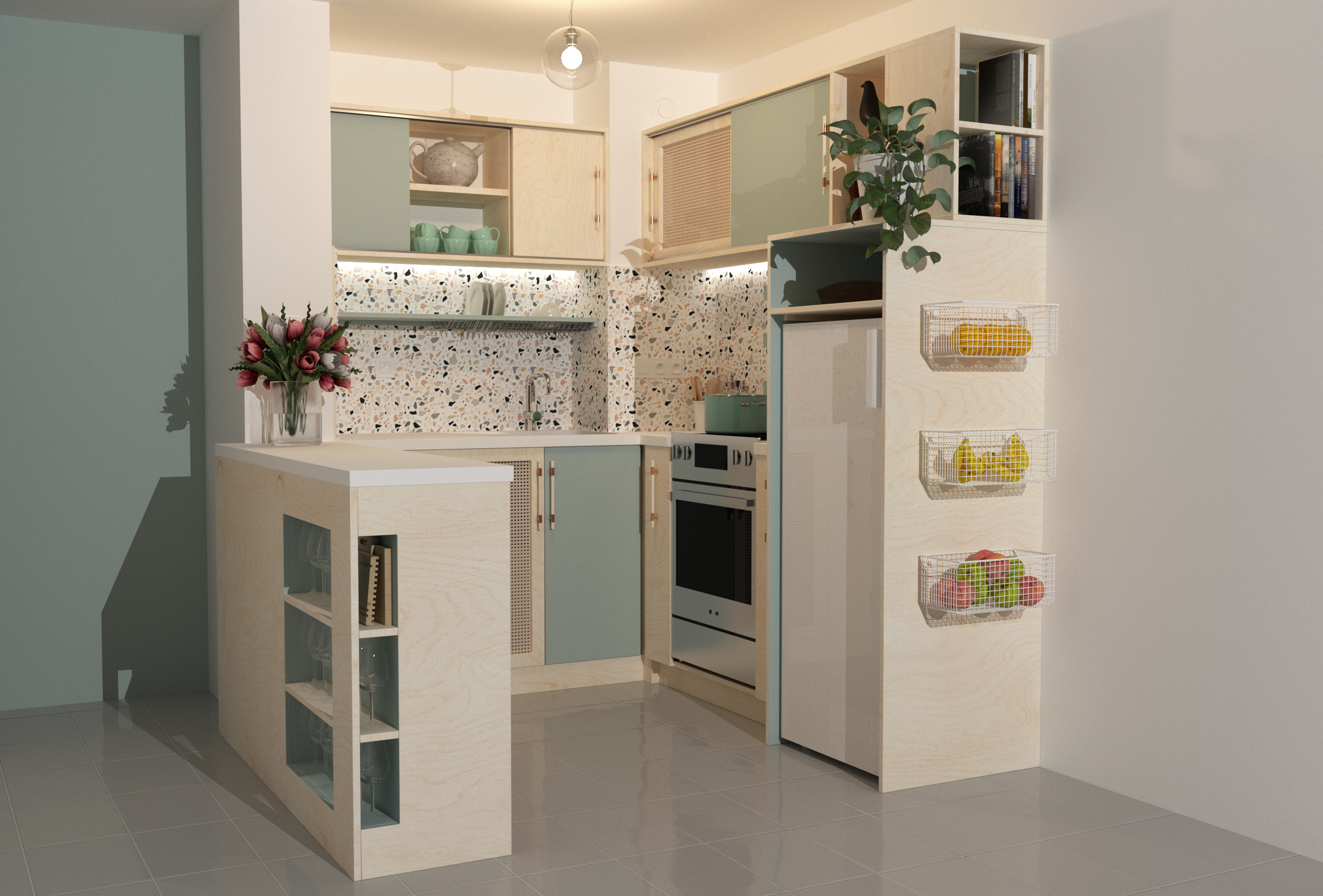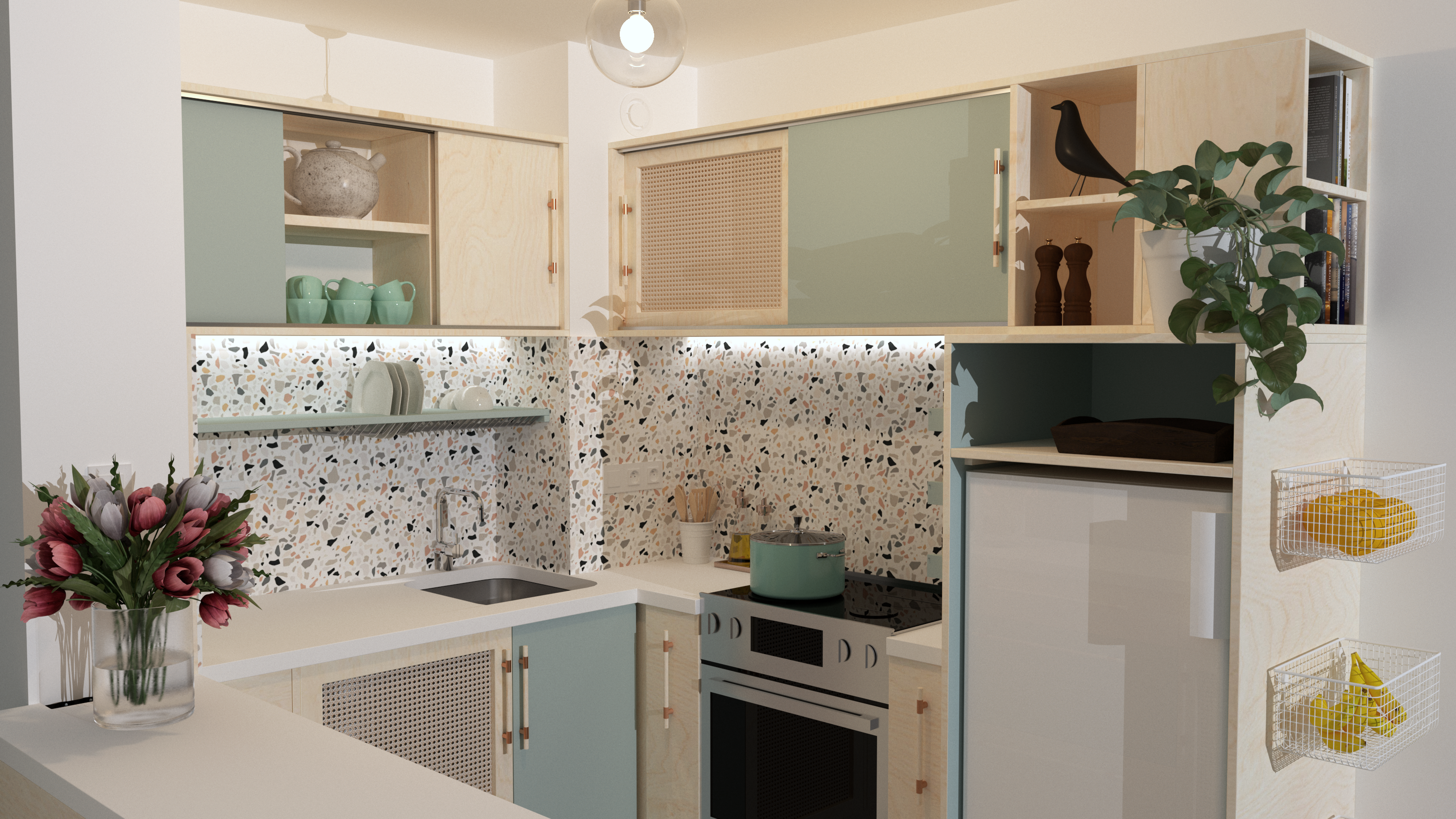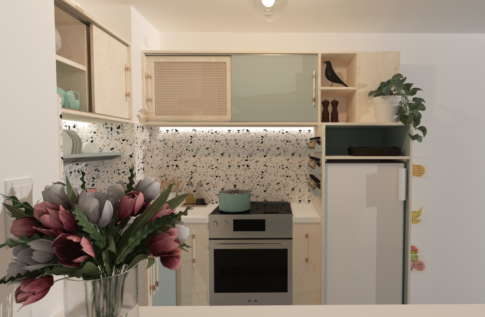 Ce projet a été conçu pour une cliente qui souhaitait créer une cuisine sur-mesure à son image, tout en respectant les contraintes d’un appartement en location. L’objectif principal était de lui offrir un espace de cuisine fonctionnel, esthétique et personnalisé, tout en minimisant l’impact sur l’existant afin de préserver l’intégrité de l’appartement.